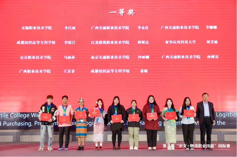 近日,由中国物流与采购联合会主办,江苏建筑职业技术学院承办的第三届“中文+物流职业技能”国际赛决赛在江苏省徐州市圆满落幕。本届比赛共有来自25个国家的318名国际学生参赛,我院2022级老挝留学生马丽莎、王明等11名学生荣获国际赛决赛一等奖1项,二等奖7项,三等奖3项;我院荣获最佳组织奖,同时刘露、白冬梅老师荣获优秀指导教师奖。