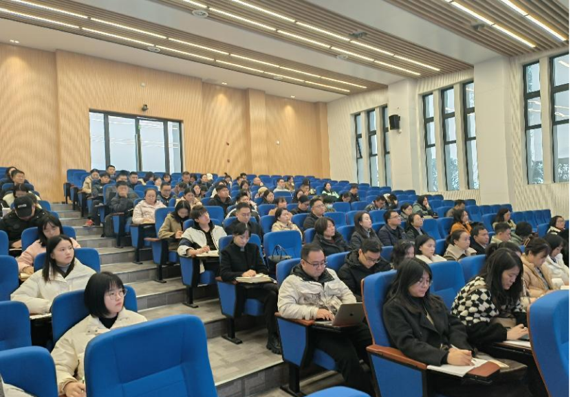 12月5日下午,党委书记林世全为青年干部教师素能提升研习班全体学员作题为《教育的真谛》的第四期讲座。