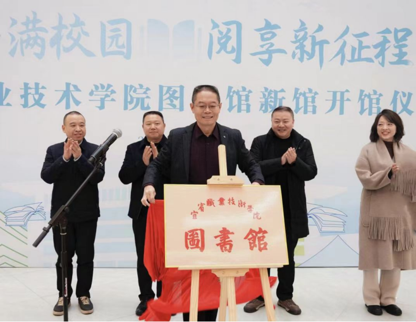伍小兵表示,新时代赋予新使命,新征程呼唤新担当。全院师生要充分利用好新图书馆的馆藏资源,积极参与到全民阅读中去,勤奋学习、刻苦钻研,不断追求真理,勇攀知识高峰。同时,他希望图书馆的全体工作人员能够全面提档升级服务质量,秉持“读者至上”的服务理念,按照“开放、共享、创新、服务”的工作思路,不断优化服务举措,提升服务质效,加强馆际交流,注重品牌创建,为推进校园文化建设和助力“书香宜宾”建设发挥积极作用。