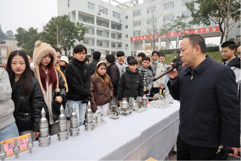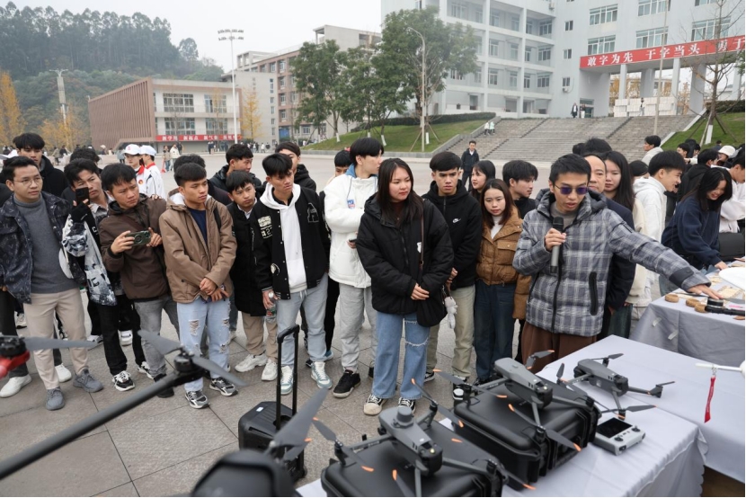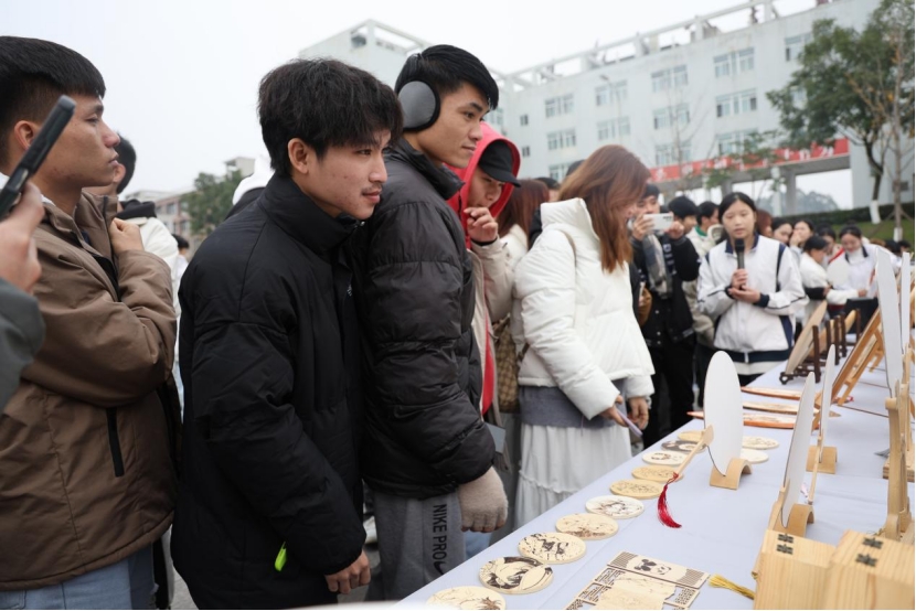 活动当天上午,老挝留学生们首先踏入了宜宾市职业技术学校(宜宾技师学院)的匠心广场。这里,数十个展位精彩纷呈,汇聚了非遗技艺、现代科技以及特色美食,为留学生们呈现了一场跨界融合的技能盛宴。解说员们生动地介绍了各项技术的原理与应用,留学生们被数控加工作品和3D打印技术深深吸引,兴致勃勃地聆听讲解,不时发出赞叹。无人机表演更是让留学生们领略到了现代科技的无限魅力,而烙铁画艺术则将传统与现代完美结合,使他们深切感受到了中国非物质文化遗产的独特韵味。此外,烹饪系的特色美食展位同样人声鼎沸,留学生们在这里品尝了中国美食,享受了一场味蕾与文化的双重盛宴。
