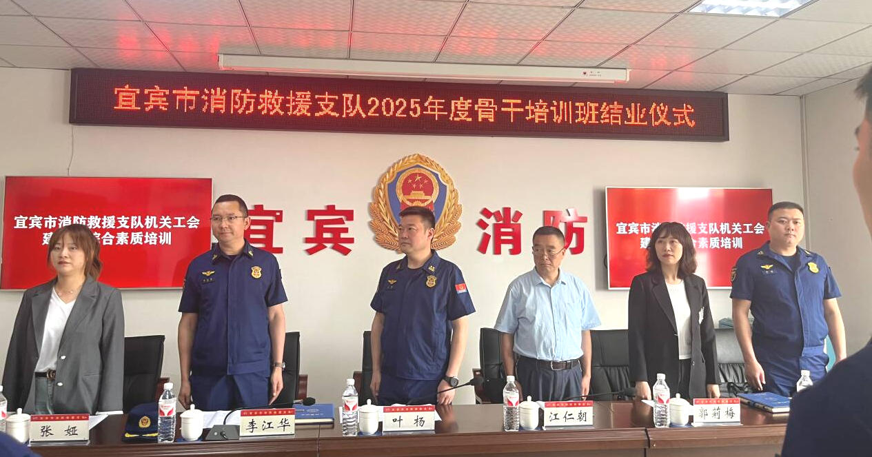 4月25日,由我校建筑与环境学院承办的宜宾市消防救援支队2025年度骨干培训班结业仪式在罗龙工业园区政府专职消防救援站举行。宜宾市消防救援支队党委书记、政治委员叶杨,我校党委常委、副校长江仁朝出席活动并讲话。