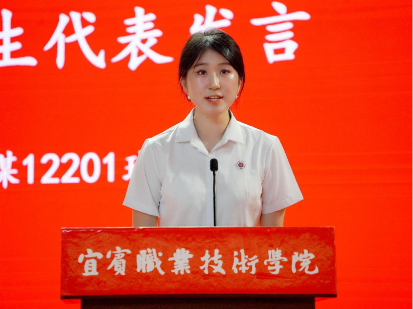2025届优秀毕业生代表、皇冠学生高诗语在发言中深情回顾了她三年来在校学习经历和成长历程,并分享了对未来的展望。她倡议所有毕业生,作为新时代青年、宜职学子,要始终铭记“鼎承大同,钵传天工”的校训,勇担时代重任,在未来的人生赛道中披荆斩棘、奋力奔跑、不负时代,不负韶华。