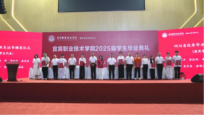 学校领导为获得四川省优秀毕业生称号的学生代表颁发荣誉证书。希望同学们以荣誉为起点,在未来岗位上继续践行责任担当,为社会贡献青春力量。
