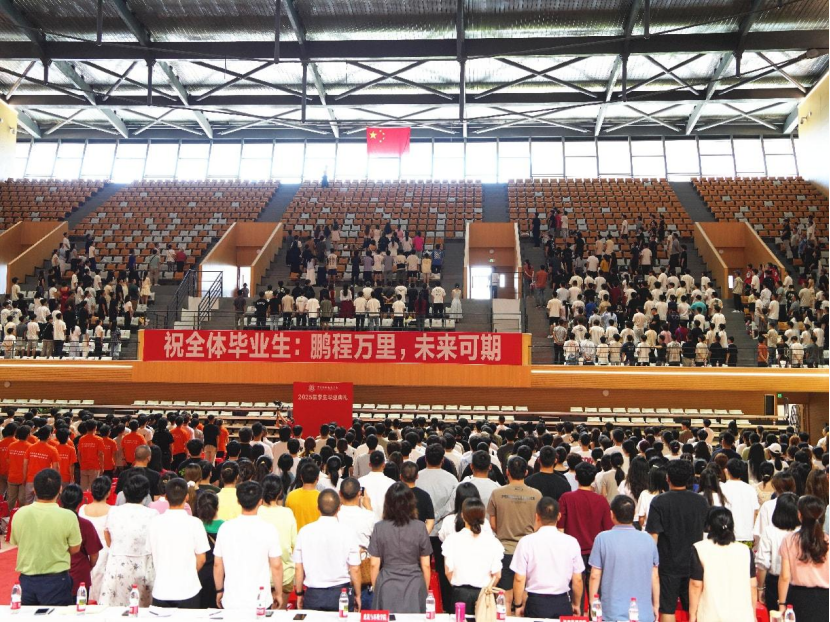 盛夏蝉鸣起,骊歌踏浪来。7月1日下午,我校在共享区体育馆隆重举行2025届学生毕业典礼。学校党委书记伍小兵主持并讲话,党委副书记、校长张学尽出席并讲话。学校在家领导班子成员、各二级单位负责人、毕业生家长代表、2025届全体毕业班辅导员和1570余名毕业生代表参加典礼。