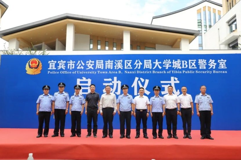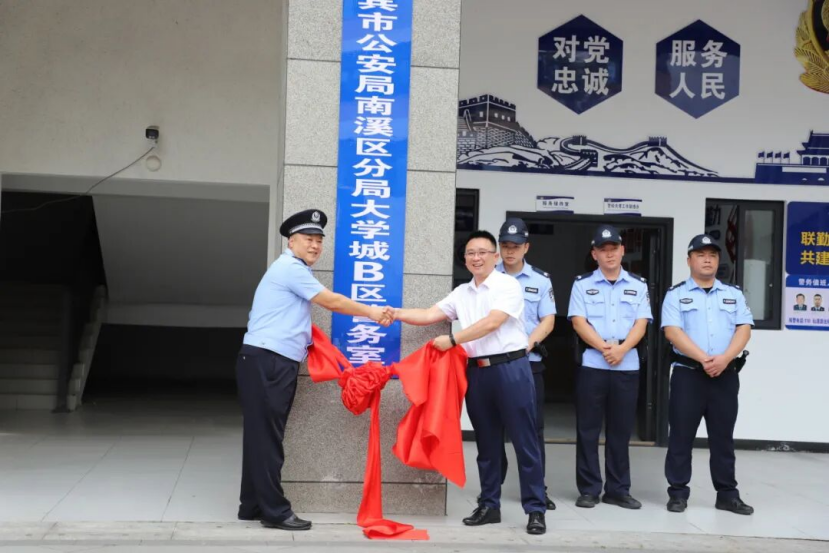 最后,郝从政与张学尽共同为“宜宾市大学城B区警务室”揭牌,标志着覆盖四所高校的校园安全新防线正式启用。