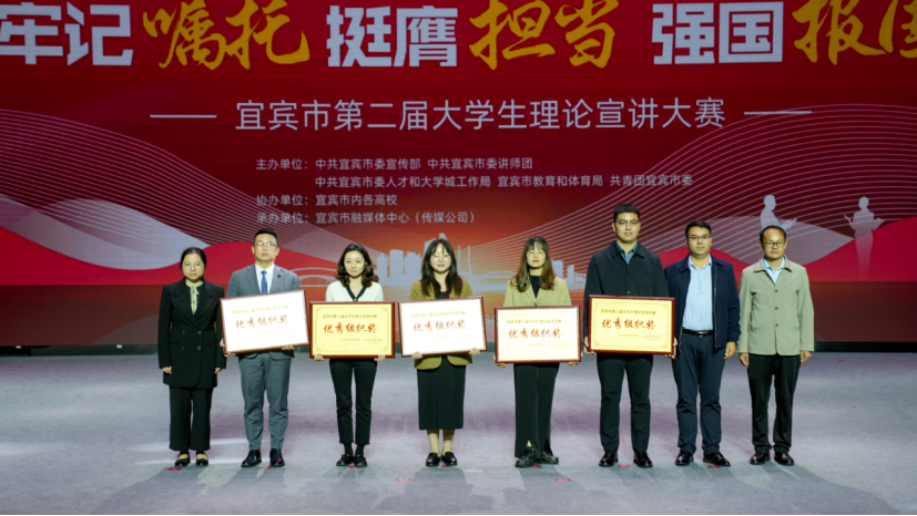10月21日,由中共宜宾市委宣传部、中共宜宾市委讲师团、中共宜宾市委人才和大学城工作局、宜宾市教育和体育局、共青团宜宾市委等有关部门主办、以“牢记嘱托 挺膺担当 强国报国”为主题的第二届大学生理论宣讲大赛决赛圆满落下帷幕。经过激烈角逐,我校选派的三支代表队从全市12支决赛队伍中脱颖而出,分别荣获特等奖、一等奖和二等奖各一项,并斩获优秀组织奖,充分展现了学校在青年学生思想政治教育方面的丰硕成果和学子昂扬向上的精神风貌。