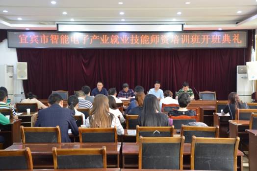 我院为贯彻落实宜宾市委、市政府重点工作部署,进一步加强全市职业技能培训师资队伍建设,促进临港智能终端产业企业用工需求,进一步提升我市智能终端师资培训水平和教学质量,特别是中伯书记对我市建档立卡贫困家庭人员到临港智能终端产业企业就业工作的指示精神。于5月9日,我院组织的“宜宾市2017年智能电子产业就业技能师资培训班”开班典礼在我院科苑宾馆三楼大会议厅隆重举行。