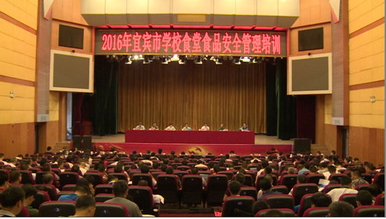 我院为了贯彻落实《四川省教育厅四川省食品药品监督管理局关于深入贯彻<食品安全法>全面加强学校学校食堂食品安全管理的通知》(川教函〔2016〕197号)要求,进一步提升食堂食品管理人员应知、应会水平,保障宜宾市学校食堂的食品安全。于2016年8月 23日至 27日 ,在蓝天宾馆开展“宜宾市学校食堂食品安全管理人员培训班”培训, 2016年8月23日上午在蓝天宾馆大礼堂举行开班典礼。