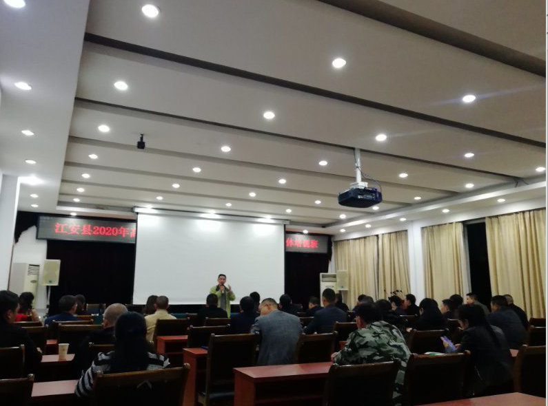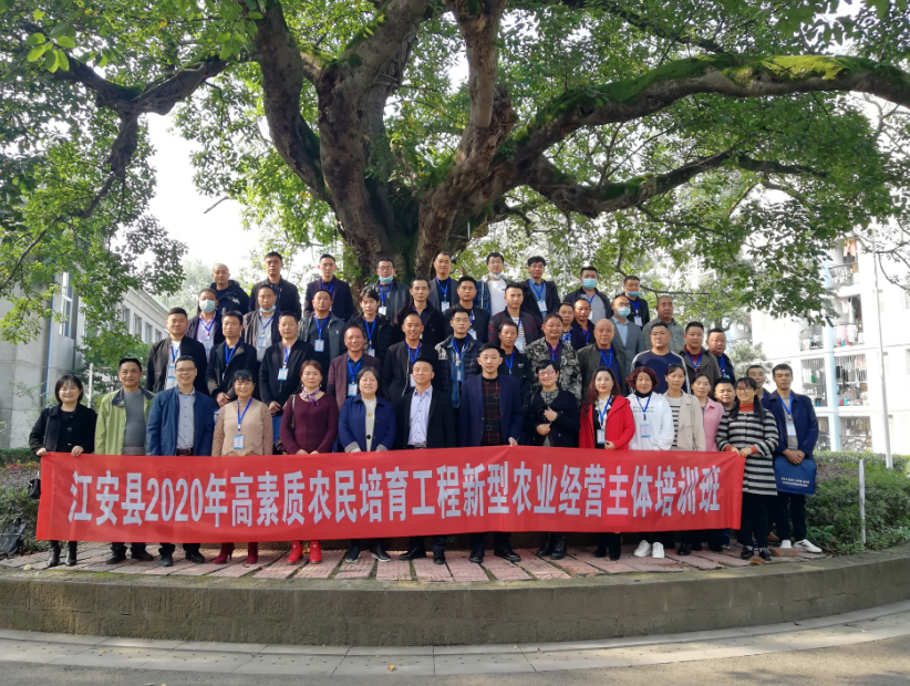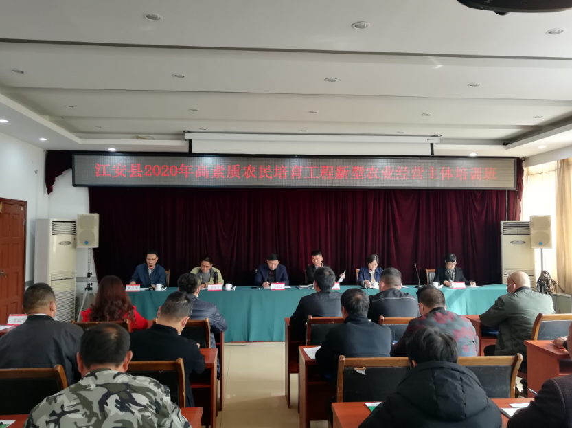 2020年10月24日下午,江安县2020年高素质农名培育工程新型农业经营主体培训班在科苑宾馆三楼举行了开班典礼,出席开班典礼的有 江安县农业农村局农能服务中心副主任汪松、江安县农业农村局科教与农机化股股长银小岚、江安县农广校校长李晓方、现代农业学院总支书记刘雪梅、现代农业学院副院长罗学平及71名学员参加。