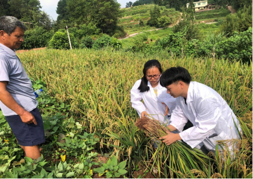 为了深入贯彻落实国家乡村振兴战略,藏粮于地,藏粮于技,充分发挥农学专业技术优势,助力区域乡村产业振兴,2021年9月11日下午,现代农业学院现代农业技术党支部书记袁小琴、教研室主任陈其敏、专业教师赵军以及学生代表刘茂前往宜宾市叙州区普安镇王前树种养殖家庭农场开展旱稻测产现场指导与教学,并将旱稻样品带回专业实验室指导学生实践,既解决了困扰农民朋友的技术难点,又教会了学生实际操作,为区域乡村产业振兴提供技术支持和人才培养支撑。