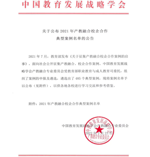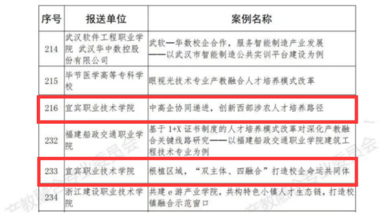 本次入选教育部产教融合校企合作典型案例,既是对学院近年来办学成效的肯定,也将激励学院持续把产教融合校企合作工作做深做精,深入服务区域经济社会发展,有力支撑宜宾建设国家产教融合试点城市,推动学院国省“双高计划”创建。