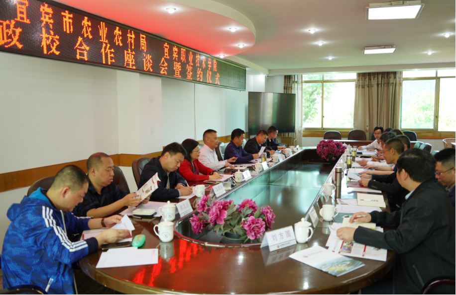 4月21日上午,宜宾市农业农村局党委书记、局长罗世俊,副局长苏雄、肖平等一行8人来我院参观考察,并举行了政校合作座谈和战略合作签约仪式。学院党委书记林世全、副院长周黎军陪同参观,党委副书记、院长伍小兵主持会议。