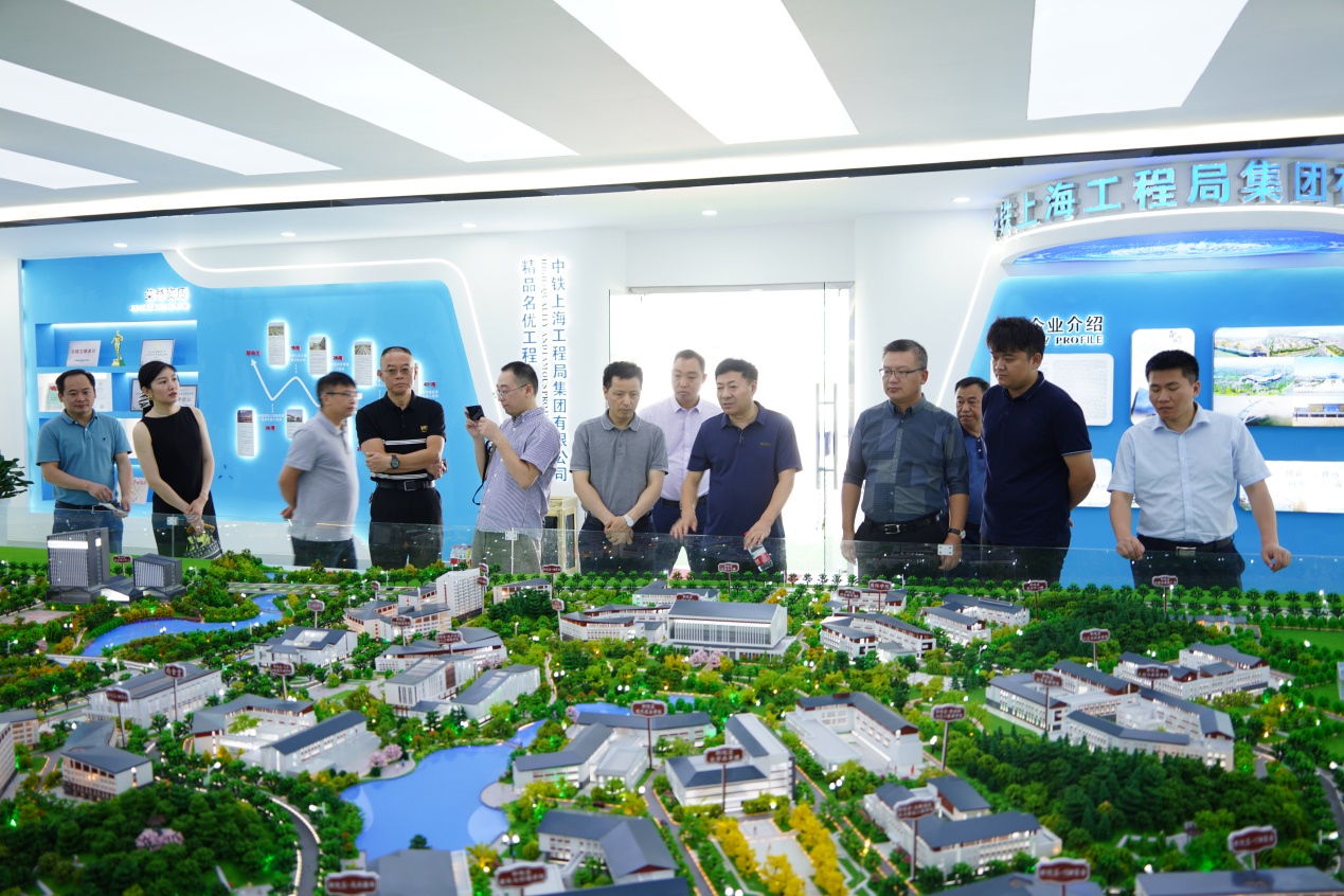 郭天平一行首先来到我院南溪新校区施工现场考察调研新校区智慧工地,通过新校区规划图和沙盘模型详细了解了新校区建设项目的基本情况、项目规划设计、工地建设以及智能化监控平台运作情况等。