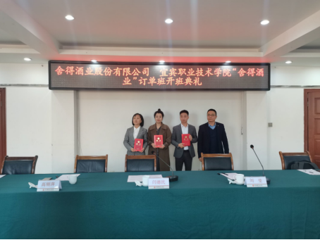 王志刚向舍得酒业产业导师颁发了聘书,闫德民为“舍得酒业”订单班学生分发了订单班物品,并分别代表学校、企业和学生代表签订了三方协议。