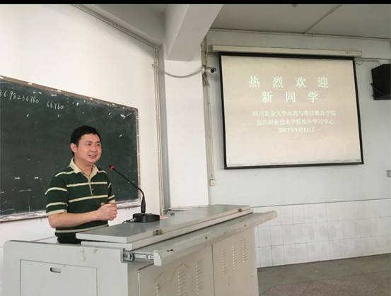 首先,学习中心负责成人学历教育管理的林伟副主任做了开学典礼致辞,对新同学加入四川农业大学网络教育学院大家庭表示了欢迎和祝贺,对新生在学习期间如何学习、考试、交流等方面提出了要求,也表示将构建起畅通的学员间沟通交流平台,并表明了welcome皇冠地址校外学习中心为学员服好务的态度。