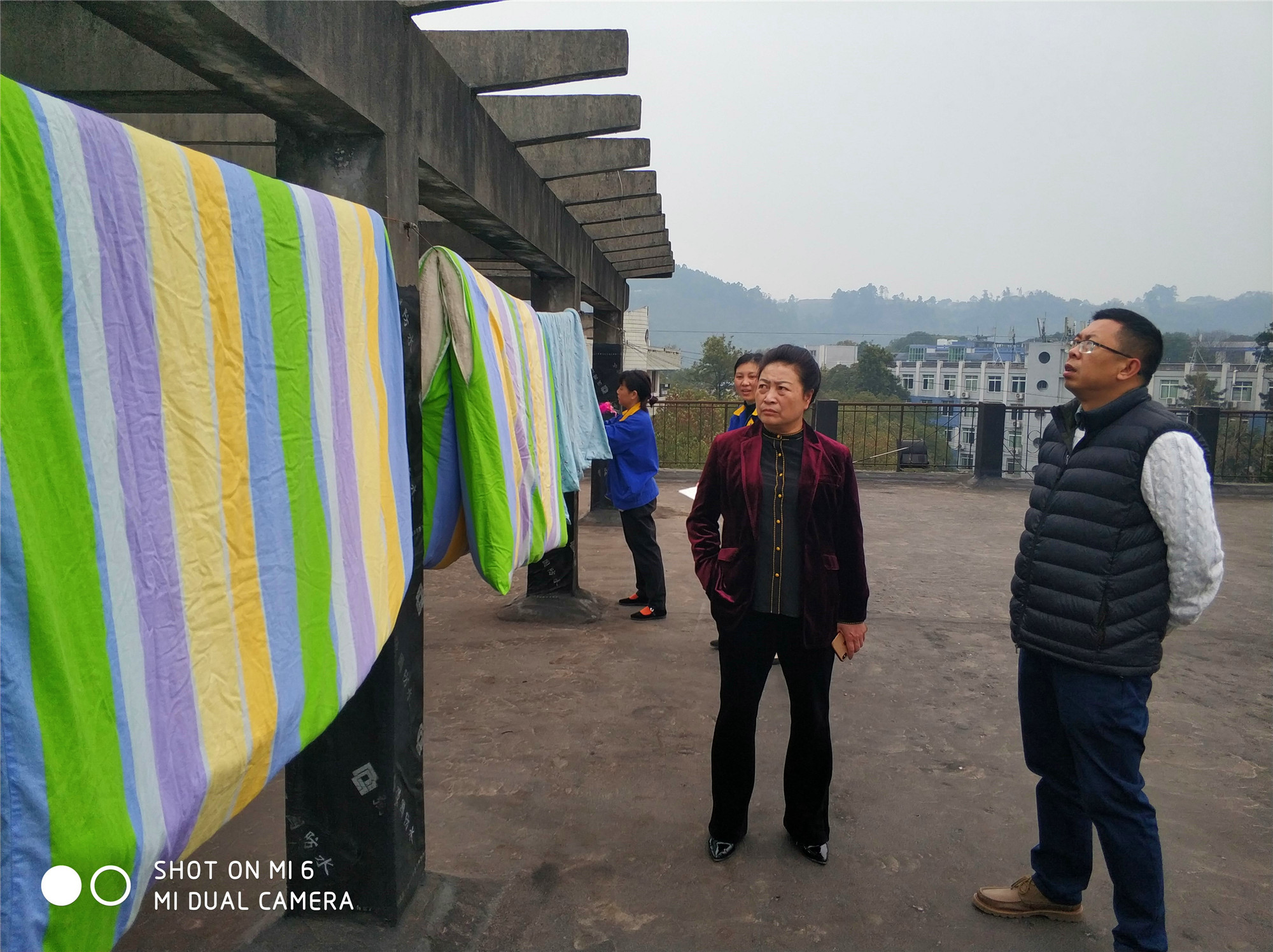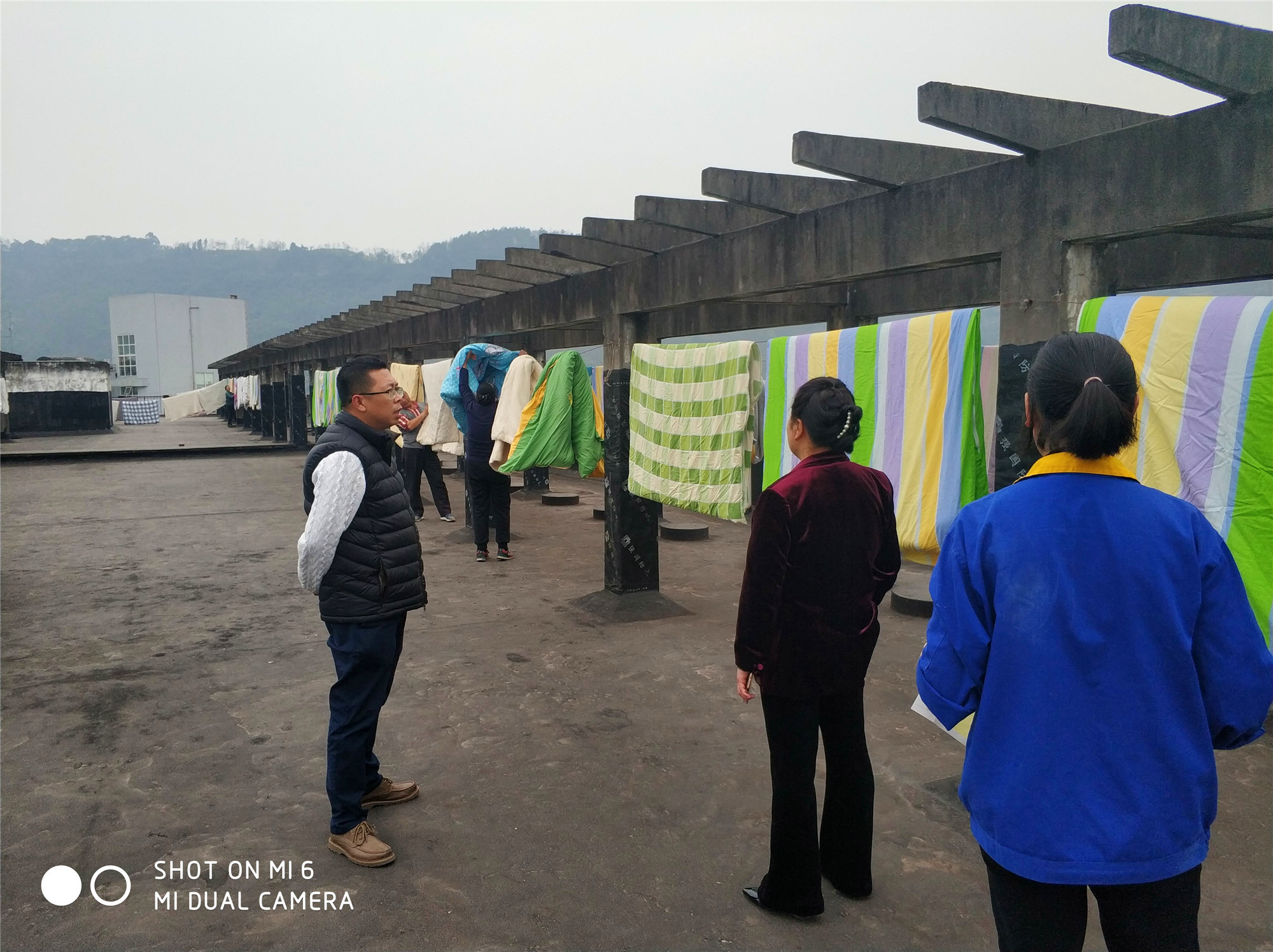 晾晒被子期间,各楼栋管理员、后勤工作人员认真负责的配合学院相关部门工作: