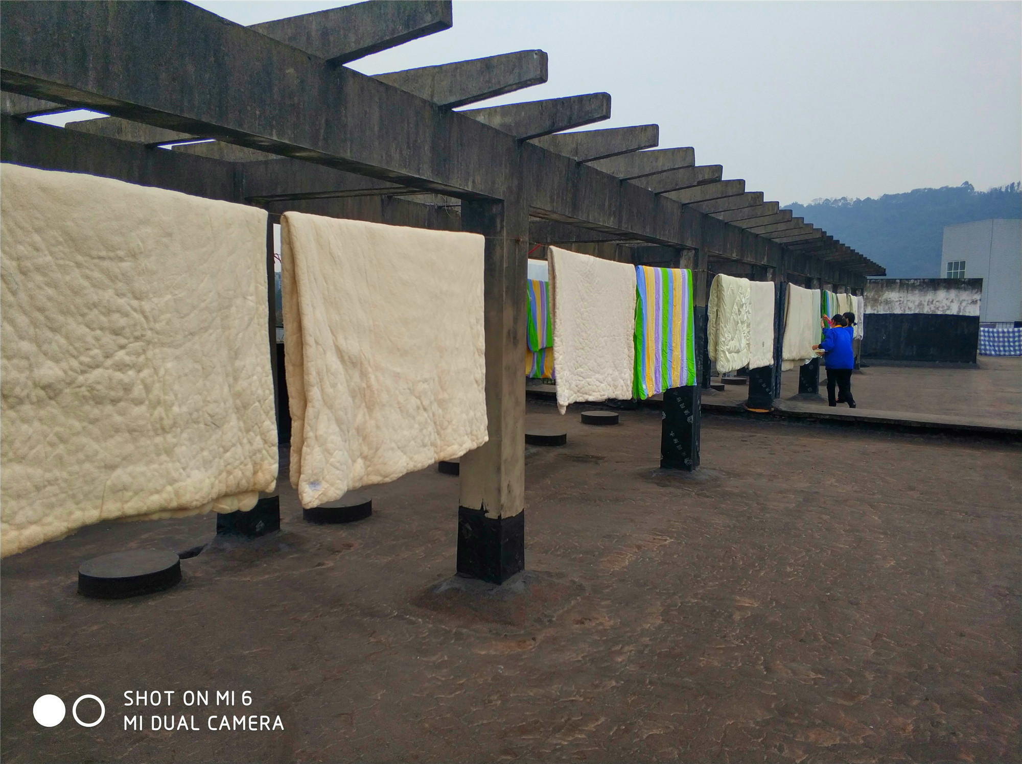 (2)将被子抱到指定位置进行晾晒,定时翻动被子确保均匀晾晒;
