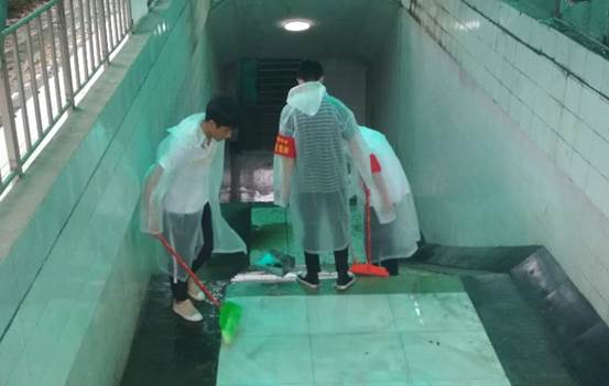 清晨7点钟,参加翠柏大道高庄桥至水井段交通文明劝导和卫生巡查值守的十多名宜职院大二、大三学生,便在带队老师带领下早早的来到高庄桥笋子厂站附近聚集点。他们内穿红色志愿服,外披雨衣,在社区工作人员和老师指导下分工定点,职责明确,井然有序地开展自己的义工工作。在社区街道、居民小区、公交站牌、公路路口及人行道上,随处都可看见志愿者们忙碌的身影。他们有的手持扫把撮箕,认真地清扫地面积水和垃圾;有的手执红色小旗,严格地指挥过往车辆和行人,有的笑容可掬,往来协助乘客上下公交车。尽管天上秋雨淅沥,地面积水绵延,但只要身穿红色志愿服的师生走到哪里,哪里就成为阴雨中的一道亮丽风景。