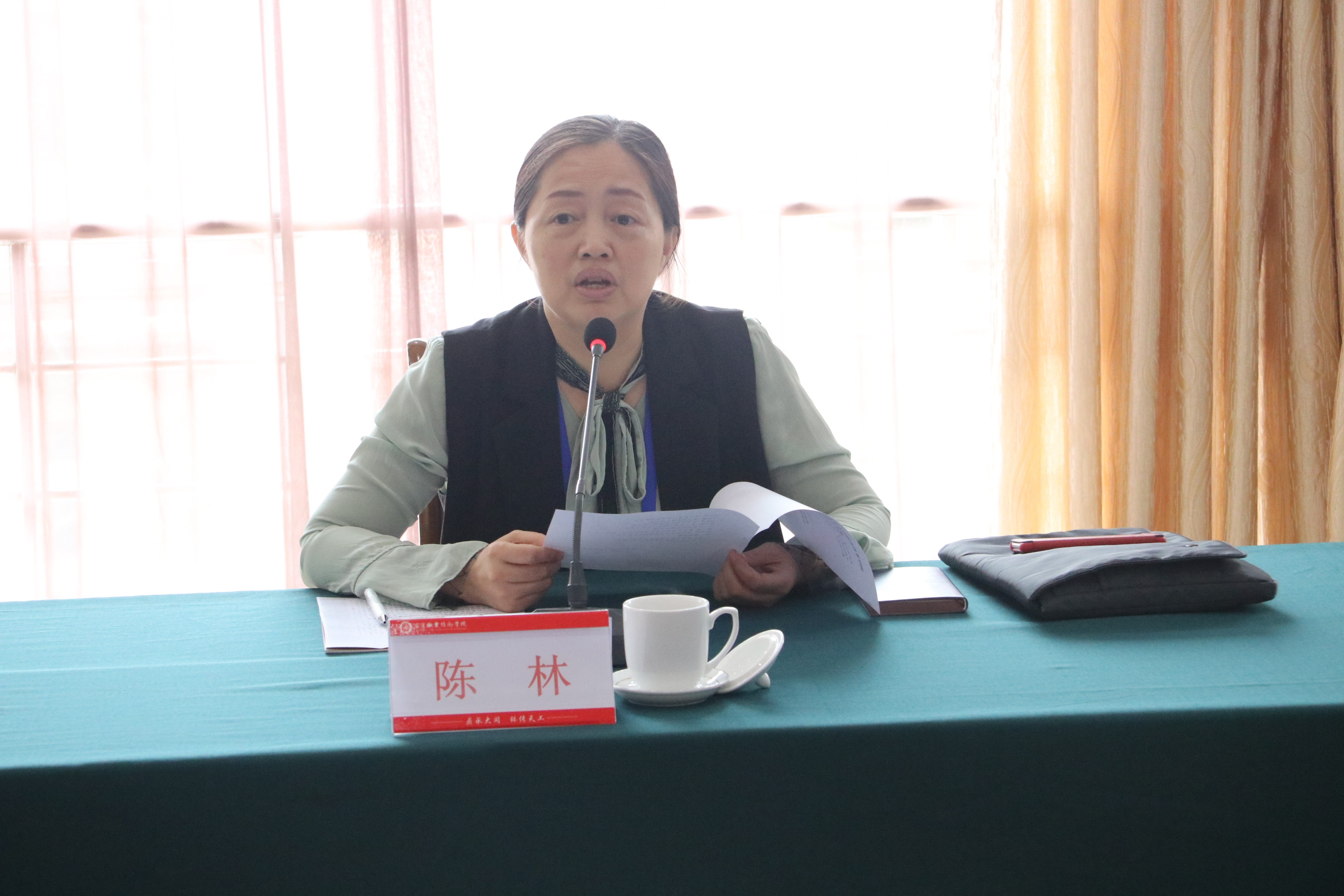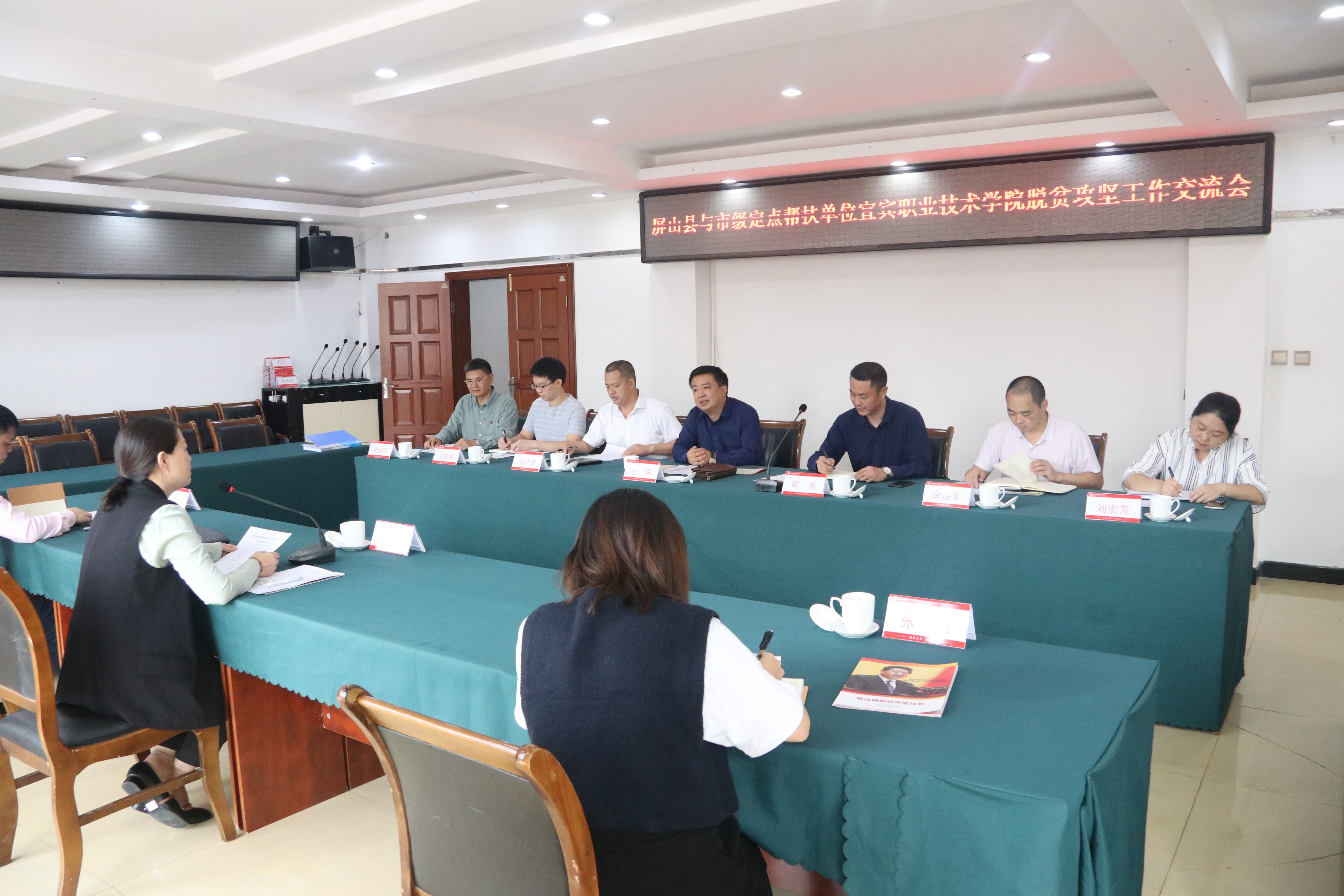最后,陈书记做了总结发言。她首先祝贺屏山脱贫,肯定了屏山的发展成绩和帮扶干部的辛勤付出,表示对屏山脱贫感到骄傲和自豪;祝贺屏山高质量发展,指出地方高质量发展要靠党建引领,产业支撑,人才助力。屏山纺织业、职业教育、农牧业等各方面要站高谋远,高屋建瓴,提前谋划;祝贺屏山县委县府以人为中心,人民生活品质得到提升,高品质生活对屏山干部群众的工作状态和精神状态产生的巨大影响。感谢屏山对我院驻村干部在扶贫工作中的大力支持,使隆兴村能顺利脱贫,感谢屏山对驻村干部的关心和培养。希望校县之间能建立起一个相互支持的长远合作机制,共同培养双方所需人才,并结合区域实际谈了创新屏山职校管理模式的构想,委托扶贫办吴勇刚副主任牵头,与屏山商洽具体合作方案和运行机制。陈书记代表林书记、伍院长感谢屏山县领导到学校交流帮扶工作,希望大家共同努力,把工作做得更实更细,衷心祝愿屏山变得越来越好。