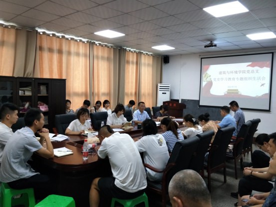 7月8日上午建环学院党总支党史学习教育专题组织生活会在建工楼四楼党团活动室召开。会议由建环学院党总支书记温燕萌主持,全体教职工参加了会议。
