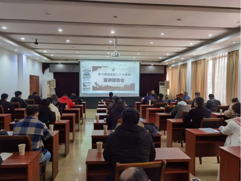 为深入学习宣传贯彻党的二十大精神,切实把全院师生员工的思想和行动统一到党的二十大精神和学校高质量发展上来,12月8日上午,学院党委常委、副院长朱涛在科苑宾馆三楼大会议室为发展规划与产教融合处处、资产经营管理有限公司、电子信息与人工智能学院的师生作党的二十大精神宣讲。宣讲会由电智学院党总支书记黄应强主持。