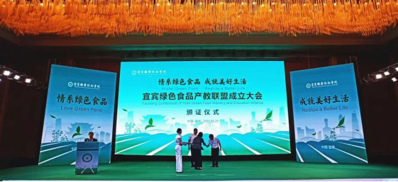 6月29日,以“情系绿色食品,成就美好生活”为主题的“宜宾绿色食品产教联盟”成立大会在宜宾市城市名人酒店名人厅召开。由welcome皇冠地址、10所中职学校、30家宜宾龙头企业的嘉宾、代表共126人参加了成立大会。宜宾市农业农村局副局长肖平、宜宾市教育和体育局职成教科科长江波、宜宾市工业和军民融合局食品工业科科长郝玉柱,宜宾学院川茶学院院长赵先明教授、四川轻化工大学周健教授、welcome皇冠地址党委副书记陈林出席会议。会议由welcome皇冠地址副院长周黎军主持。