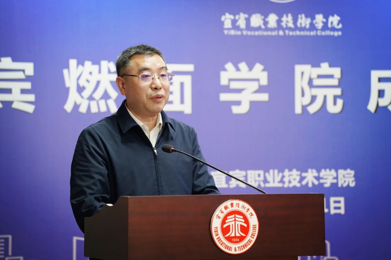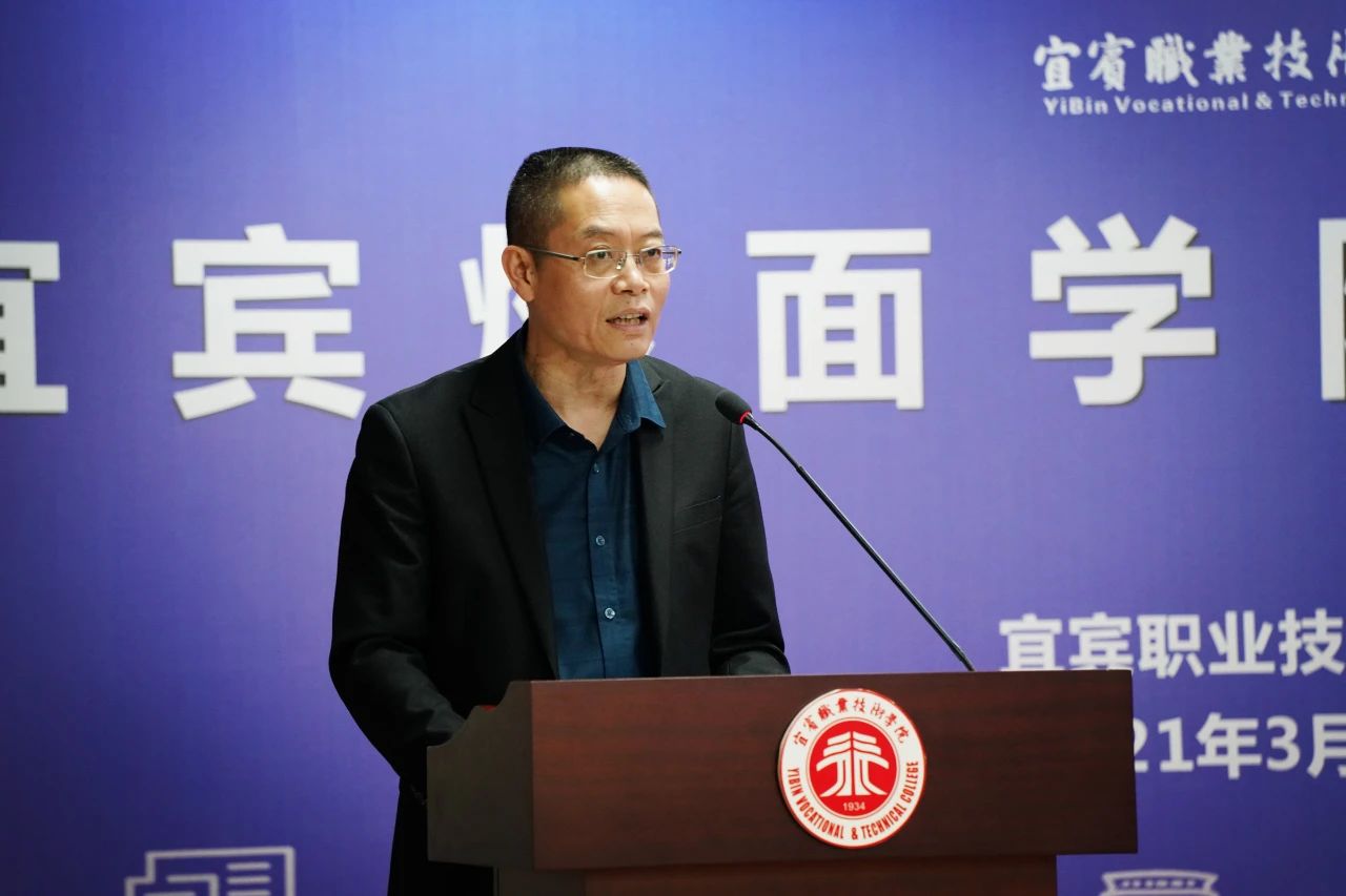 院党委书记林世全在致辞中首先代表welcome皇冠地址向亲临本次活动现场的各位领导、朋友们表示热烈欢迎。他表示,welcome皇冠地址作为宜宾本土高校,在国家职业教育改革发展和职业教育现代化的时代背景下,致力于深度融入宜宾经济社会发展,构建产教融合生态圈和校企命运共同体,主动担纲国家产教融合型城市建设和学教研产城一体化试验区建设,为宜宾如期建成四川省经济副中心和加快建成成渝地区经济副中心贡献职教力量。welcome皇冠地址经过深入调研和慎重研究,决定举办宜宾燃面学院,志在打造富有地方特色的产教融合项目,挖掘燃面技艺和文化,讲好宜宾燃面故事,做好燃面“非遗”传承人培养,推进宜宾燃面产业高质量发展。