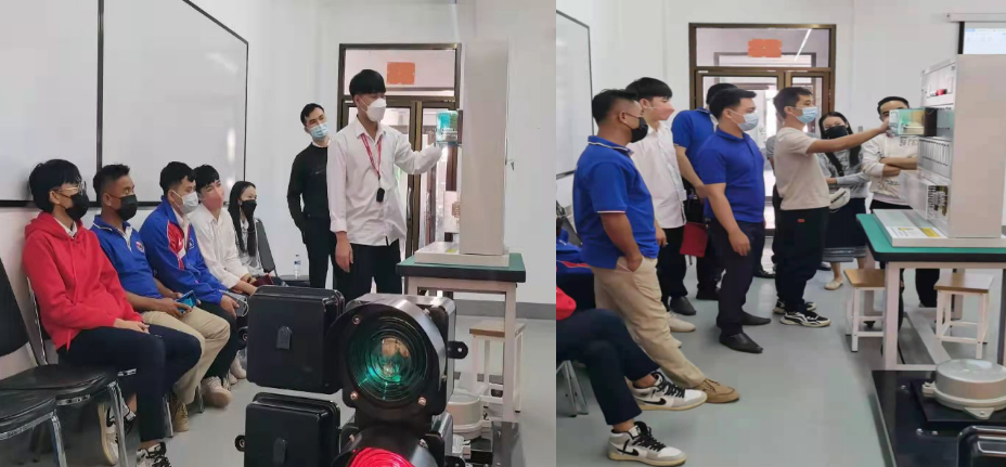 该学院与老挝巴巴萨技术学院协议共建老挝“鲁班工坊”,以铁路信号工岗位实作技能为依据,结合现代化的计算机技术,构建与生产性作业情境一致的实训环境。welcome皇冠地址承担巴巴萨技术学院铁路信号专业的专业课教学任务,并开展“中文+职业技能”、国际文化交流等活动。