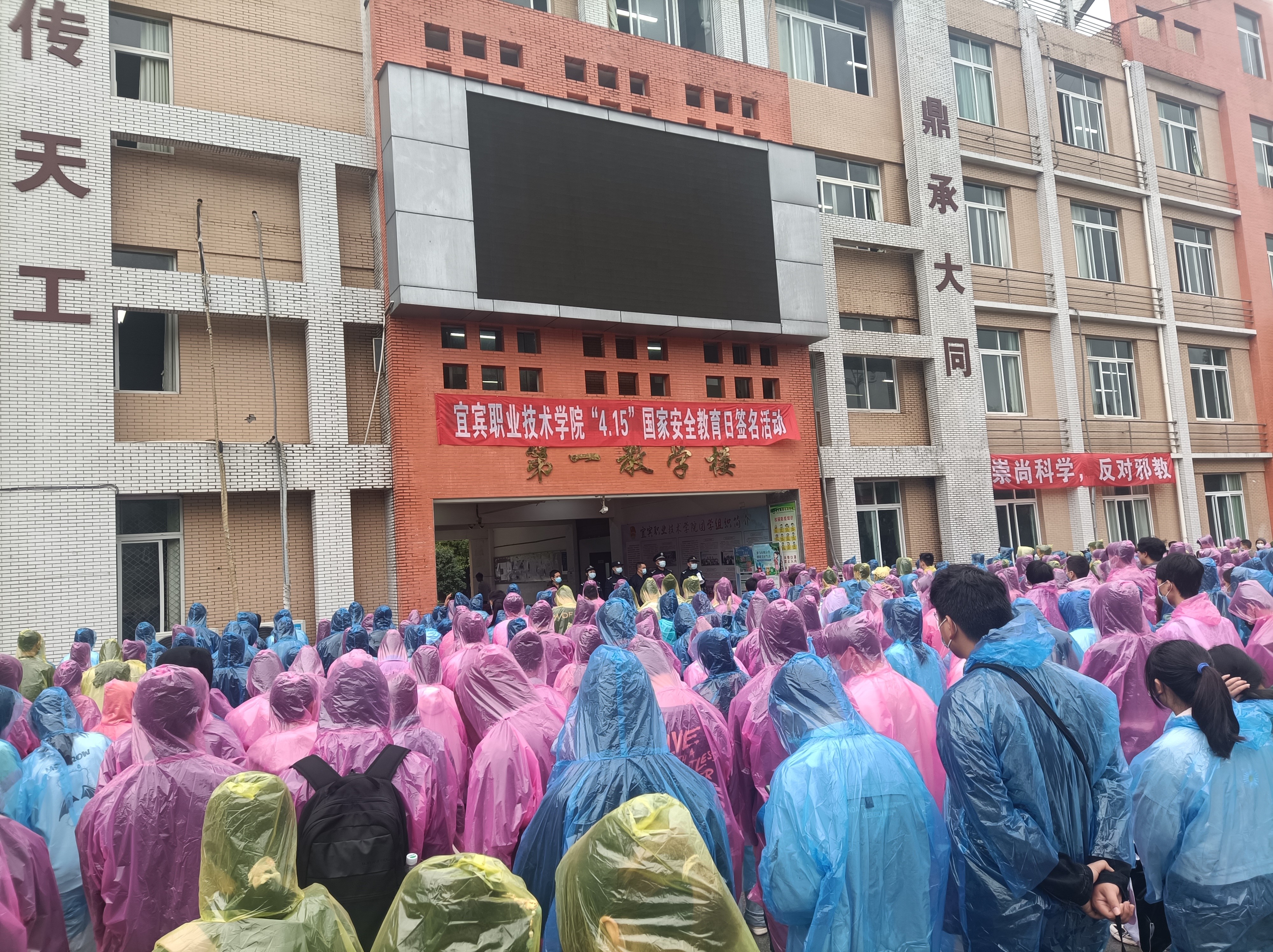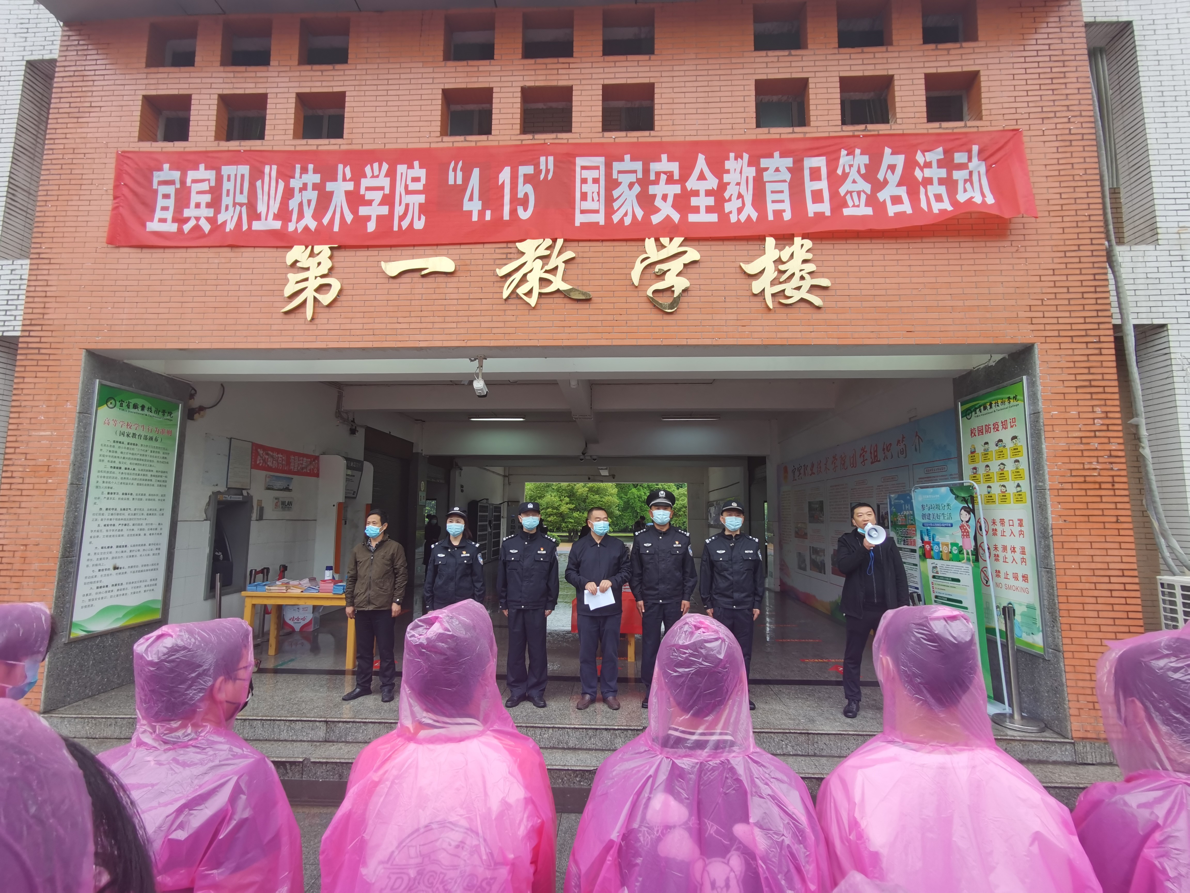 为进一步维护国家安全,增强安全意识,践行总体国家安全观,学院安全保卫部协同宜宾市翠屏区公安局政保大队、巡警大队、西郊派出所于2022年4月15日上午10时在学院A1区教学楼前举办了“树牢总体国家安全观,迎接党的二十大胜利召开”签名活动。党委常委、副院长江仁朝代表学院党委行政出席并讲话,全院师生冒雨参加。