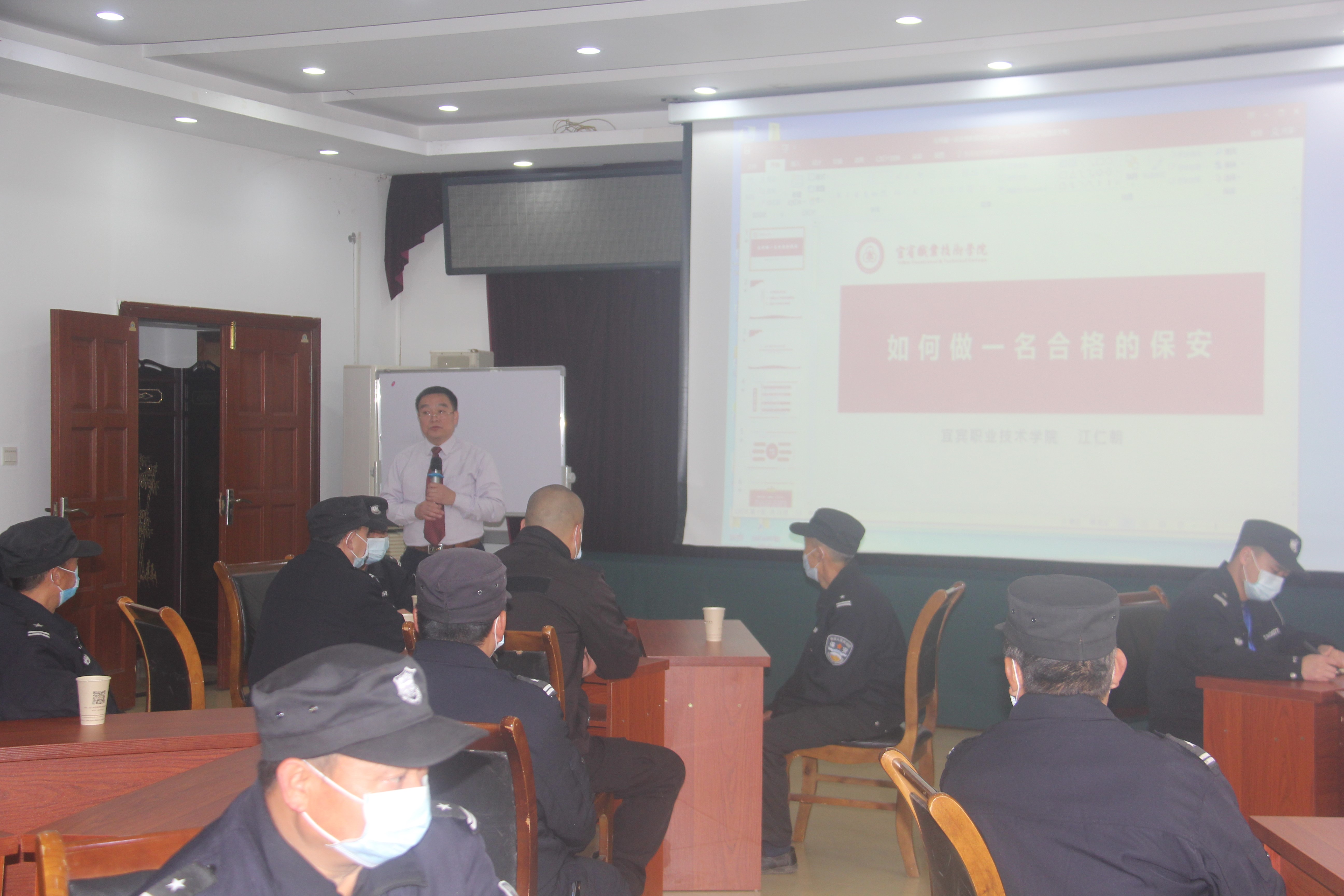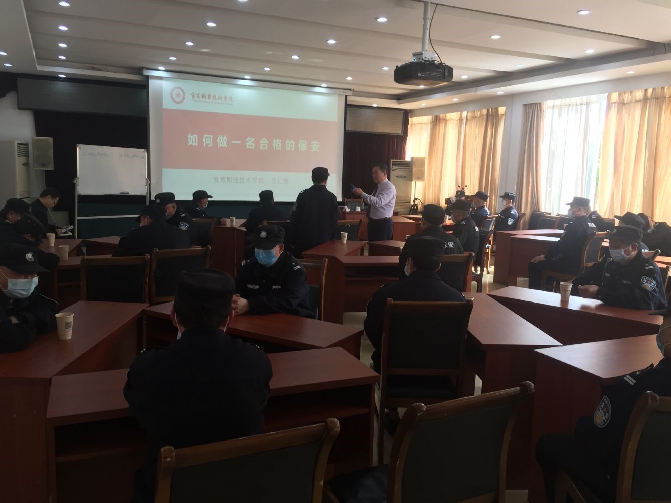 培训会上,江仁朝副院长结合学院安全管理工作实际主要从保安岗位的认知、学院物业管理现状、如何做一名合格的大学保安三个方面向与会人员进行了详尽、具体、系统的阐述和讲解: