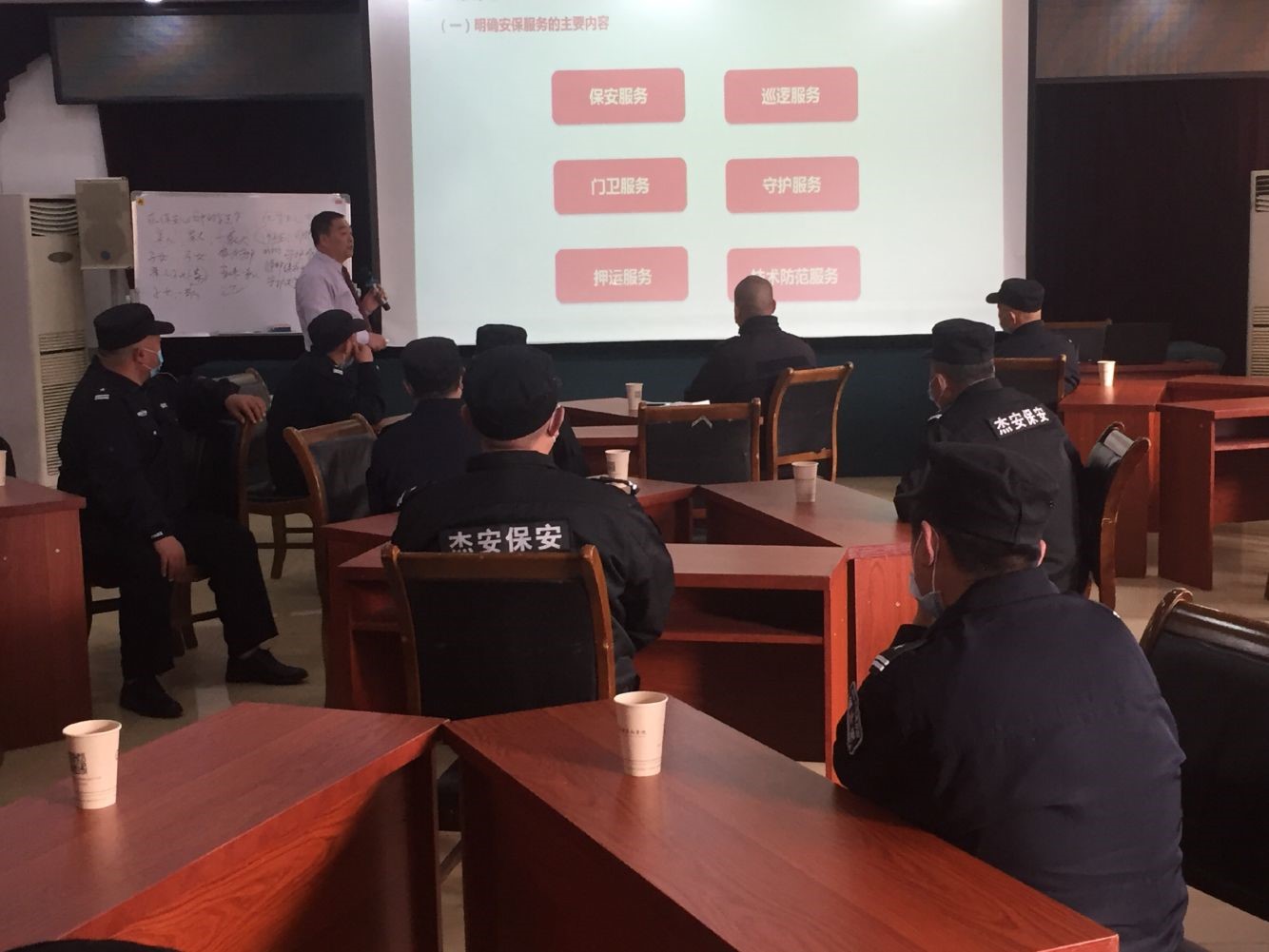 三、关于如何成为一名合格的保安人员。江仁朝同志强调:要做一名合格的保安须具有爱生如子、爱校如家、爱岗敬业、爱友如兄的情怀;要明确安保服务工作6项主要工作内容,具备政治、业务、文化三项基本条件,明确7项服务标准,履行14项岗位职责和落实学院站岗、进出人员管理巡逻、物品出入查验等管理制度;充分发挥自身在校园安保工作中的作用,以饱满的工作热情,踏实的工作态度和工作作风服务于学院广大师生。