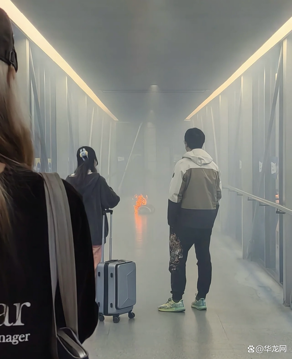 一进港航班下客时廊桥内突然起火