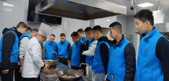 培训以烹饪工艺与技巧理论知识开篇,充分考虑到部队学员籍贯分布广泛的特点,从食材挑选、鉴别,到烹饪实操, 再到最后的摆盘,各个环节都经过精心设计。在专业团队耐心细致的指导下,学员们通过反复实践操作,烹饪技能实现 了显著提升。培训期间,部队战士严谨的纪律作风和高效执行力,也给教师团队留下深刻印象,成为双方交流学习的宝贵财富。