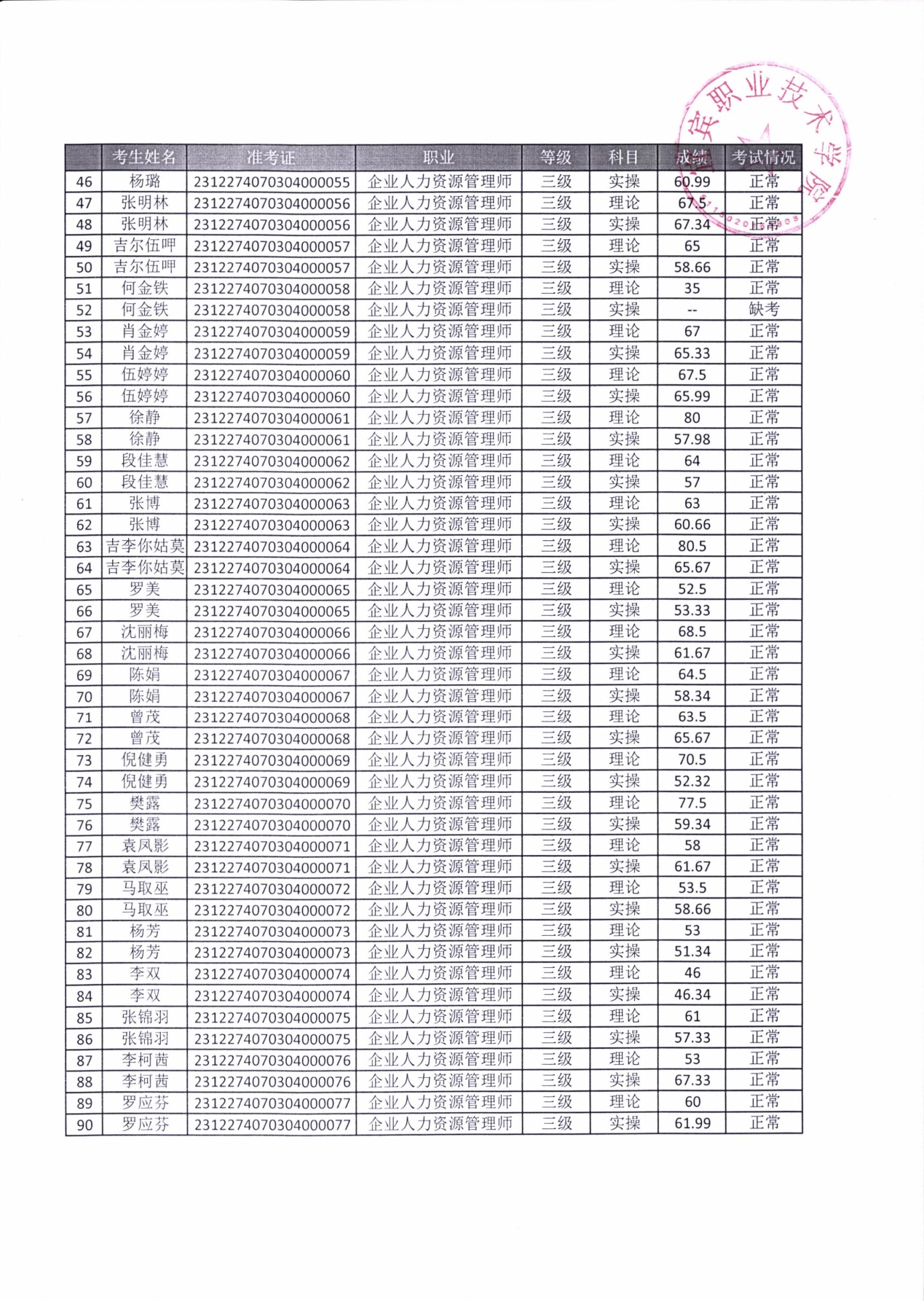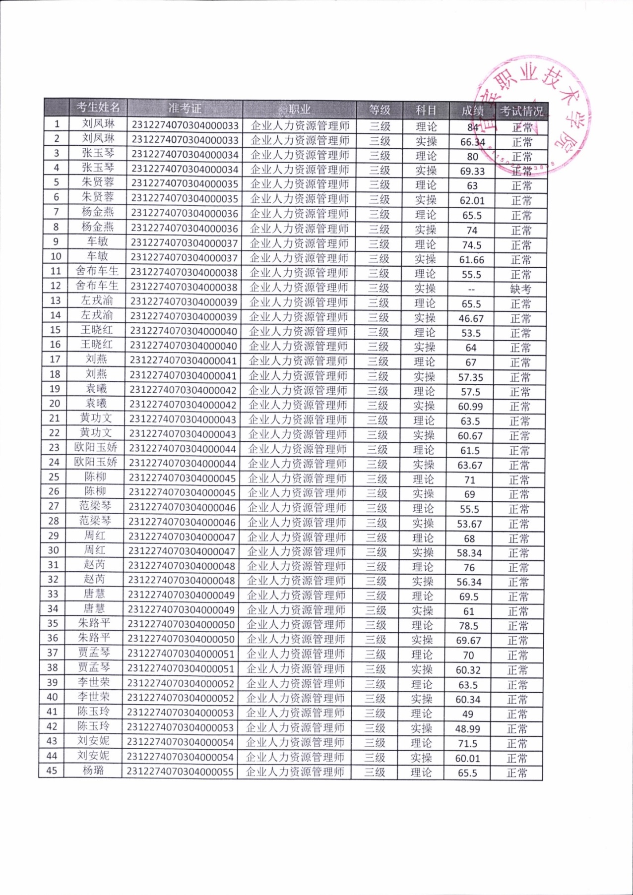 上一条:关于20240112批次职业技能等级认定成绩的公示 下一条:关于20231220批次职业技能等级认定成绩的公示